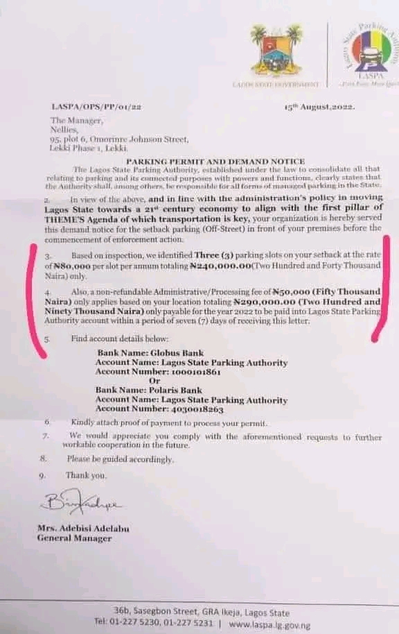 Why Lagos State Residents Must Pay Fee For Parking their Cars Inside Their compound.