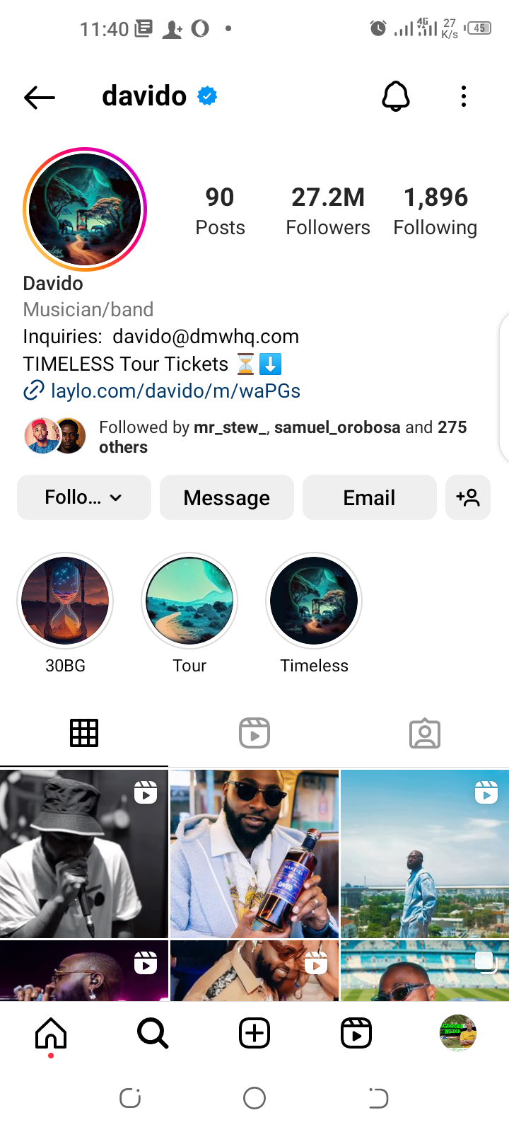The Omo Baba Olowo king has 27.2 million Instagram followers.